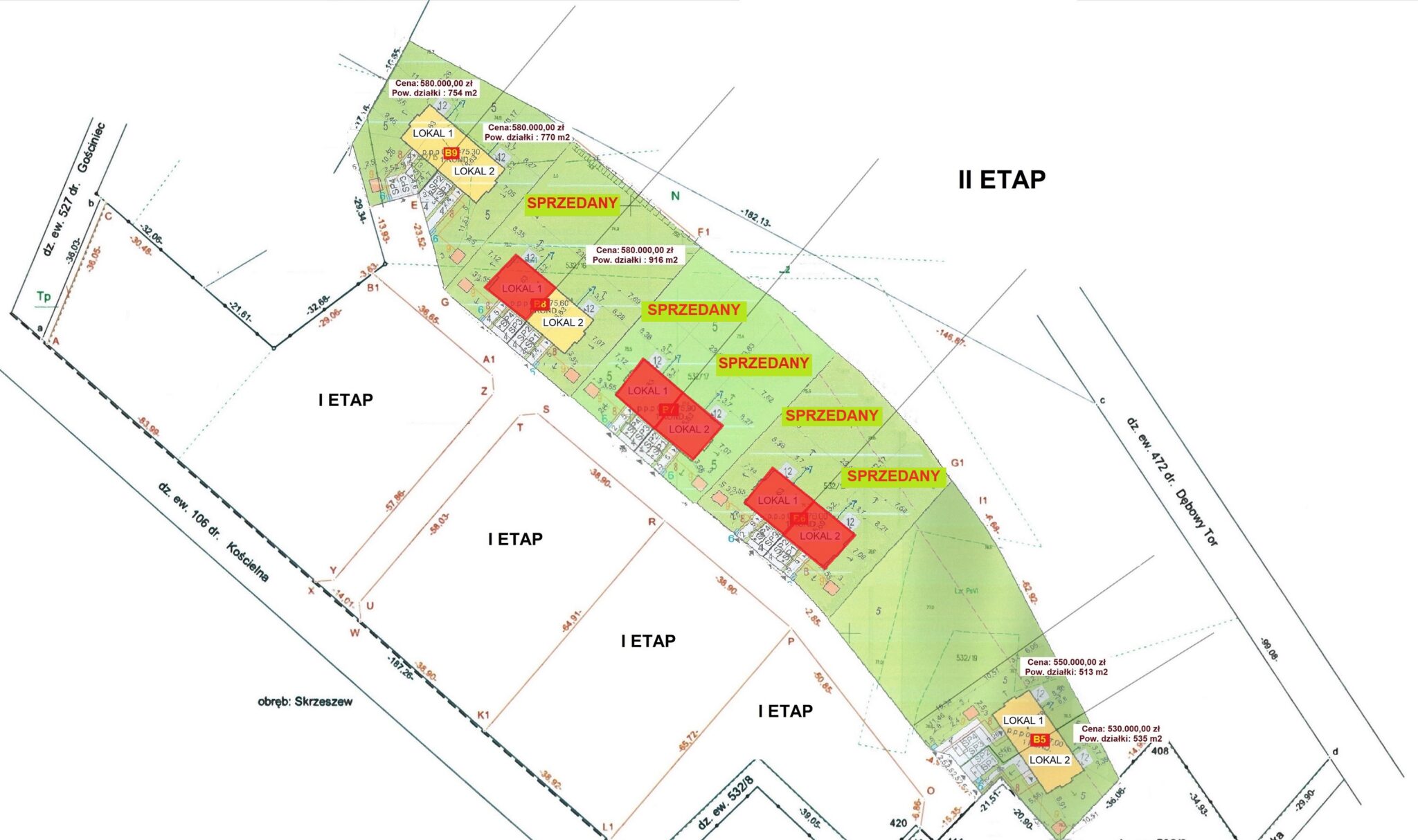 W ofercie znajduje się 5 z 6 budynków jednorodzinnych w zabudowie dwulokalowej. Budynki zlokalizowane na działkach od 850 do 1250 m2.