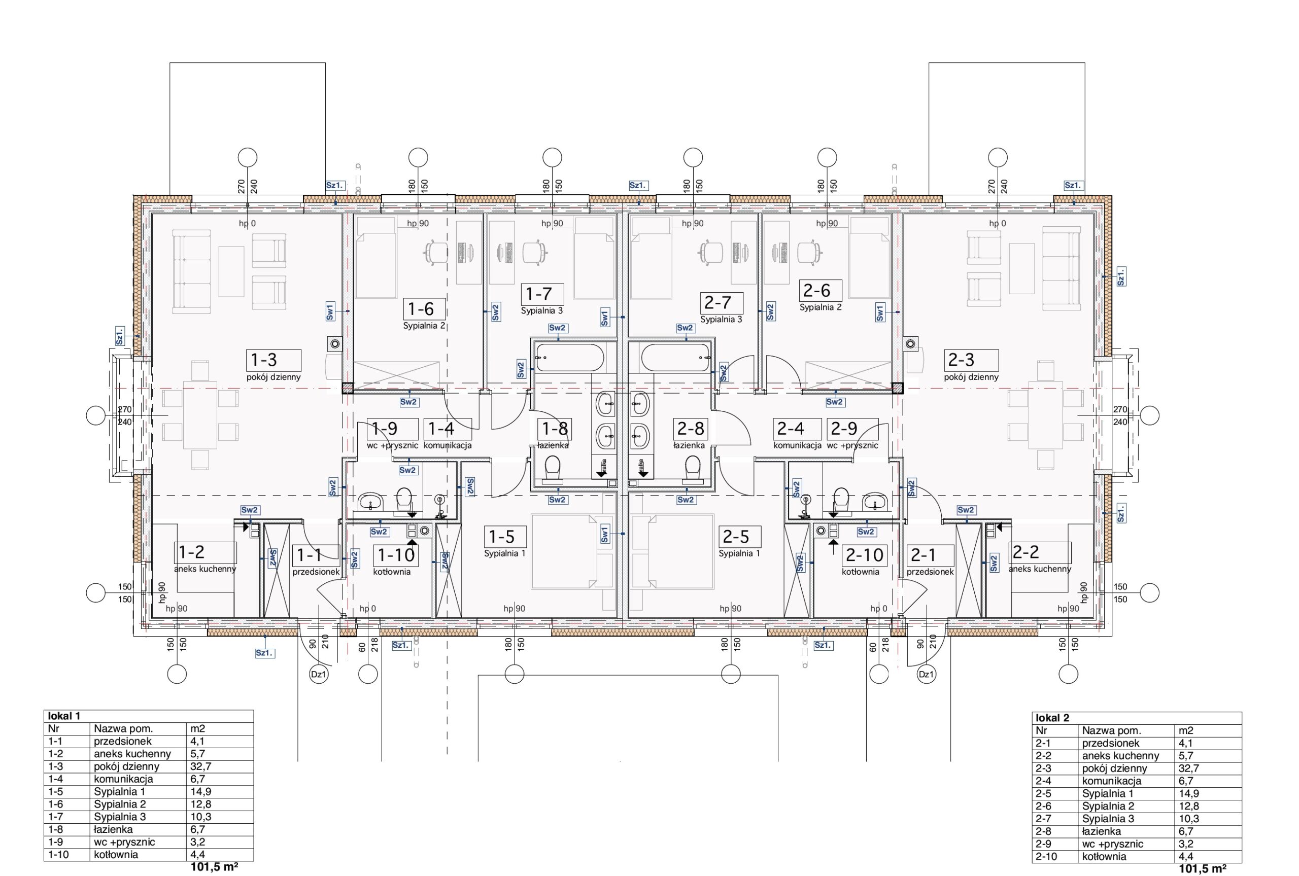 Łącznie lokale posiadają 101,5 m2 powierzchni użytkowej.